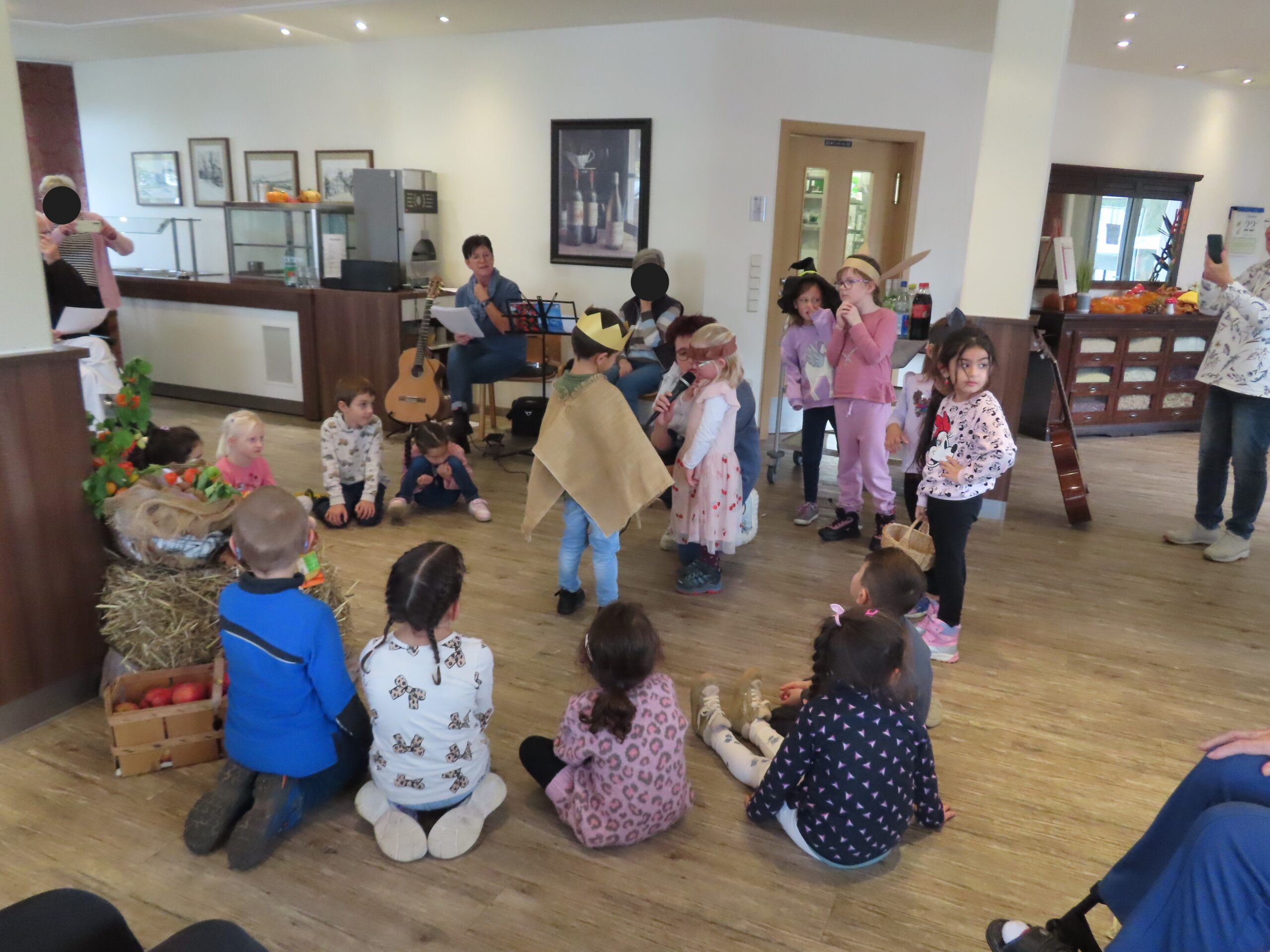 Die Kinder haben an diesem Tag das Märchen vom Kartoffelkönig vorgespielt und wir haben Herbstlieder gesungen. Die Senioren und die Kinder hatten viel Spaß daran.
